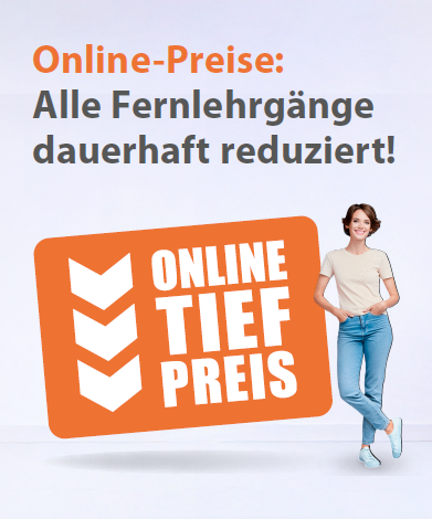 - Zugang zum Online-Studienzentrum mit allen Studienheften digital zum Download, interaktivem Online-Studienmanager, regelmäßig unterstützenden Online-Seminaren / Webinaren sowie direktem Kontakt zu Fernlehrern, Studienbetreuer und Mitstudierenden aus Ihrem Lehrgang